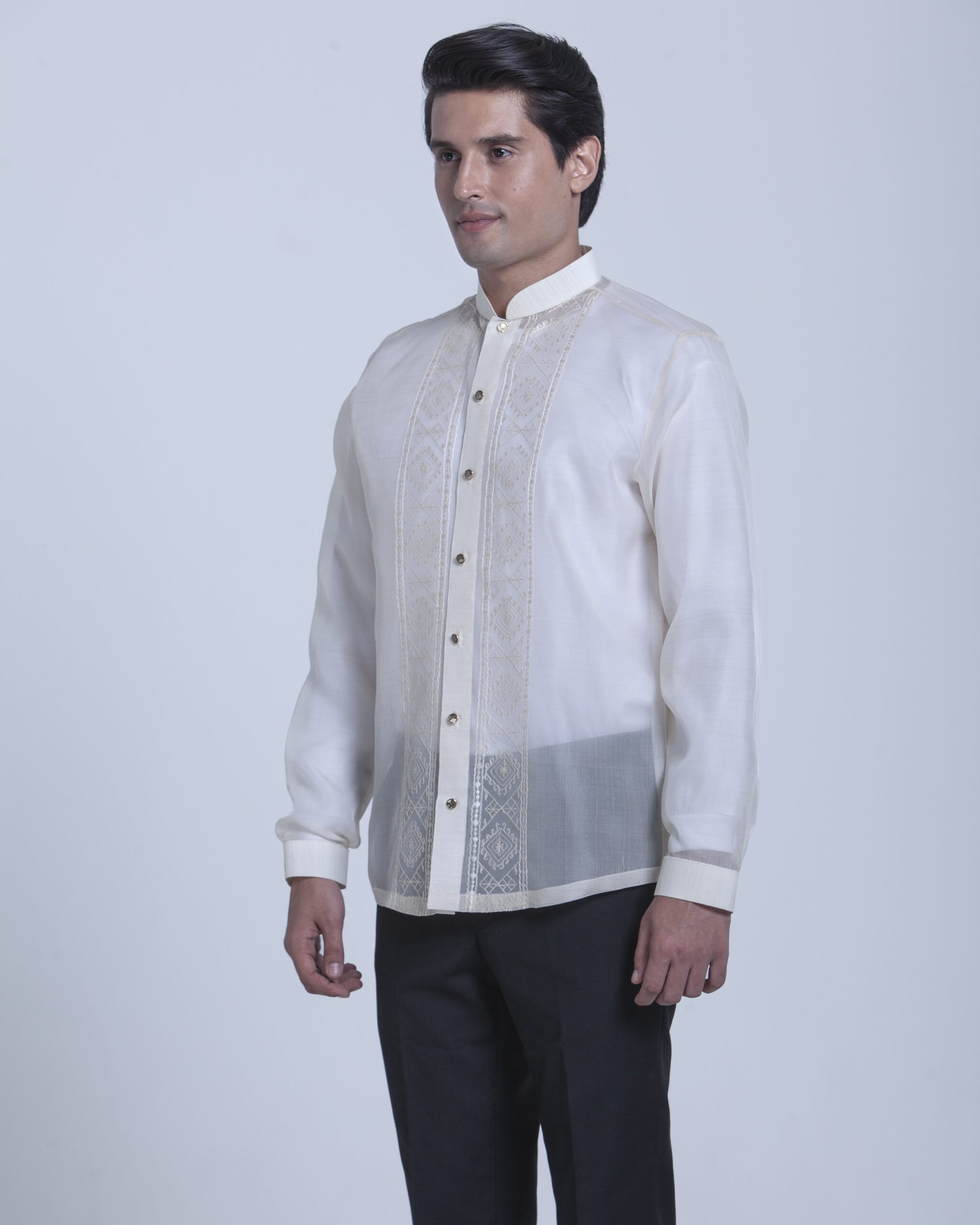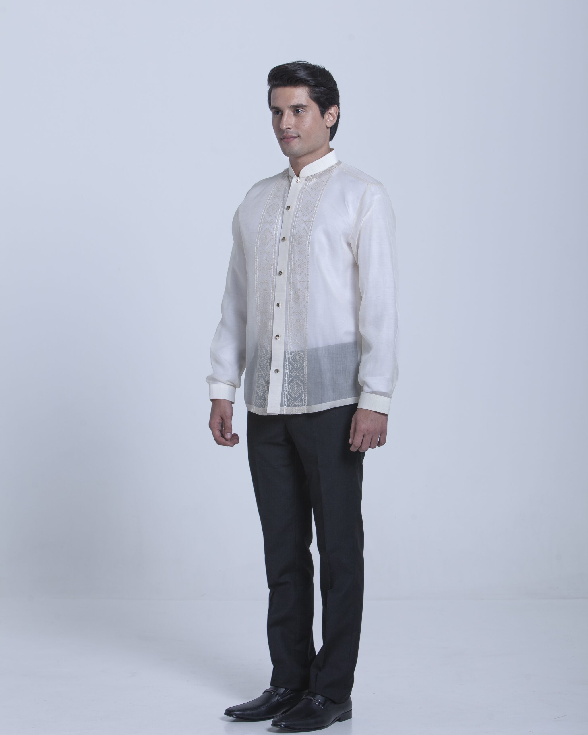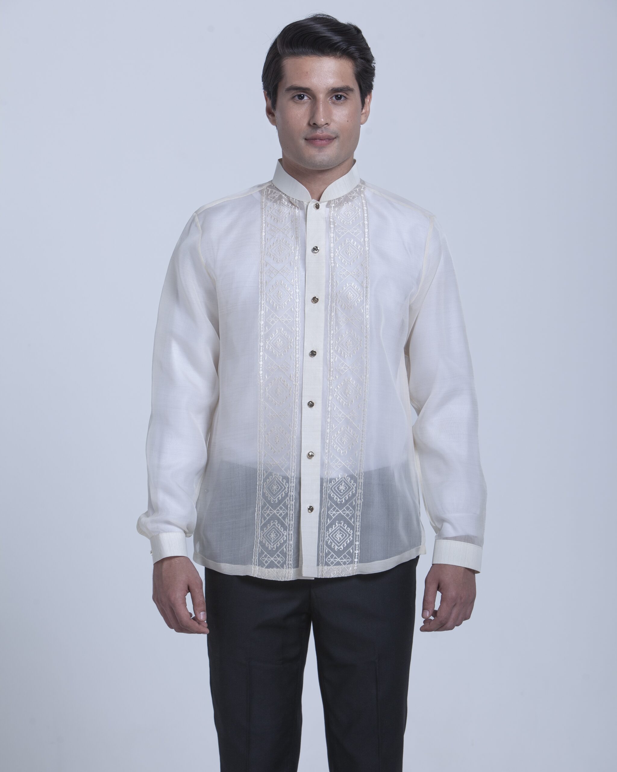 This Onesimus Classic full-open Formal Barong is accentuated with ethnic pattern and special buttons.