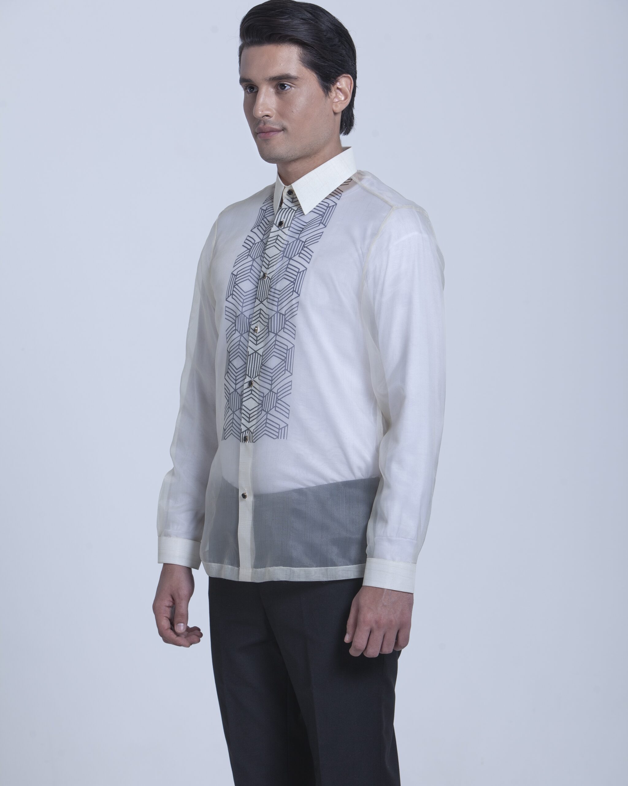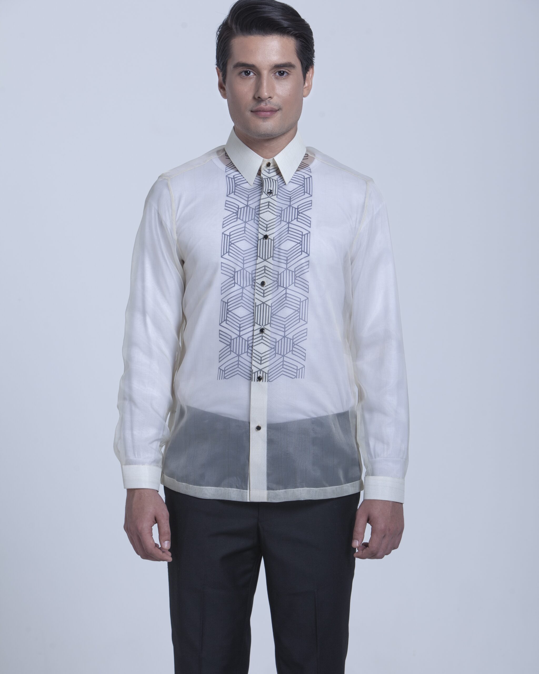 This Onesimus Classic full-open Formal Barong is accentuated with abstract print and special buttons.