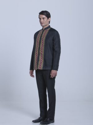 This modern Onesimus half-open Office Barong has ethnic print complemented with special buttons.